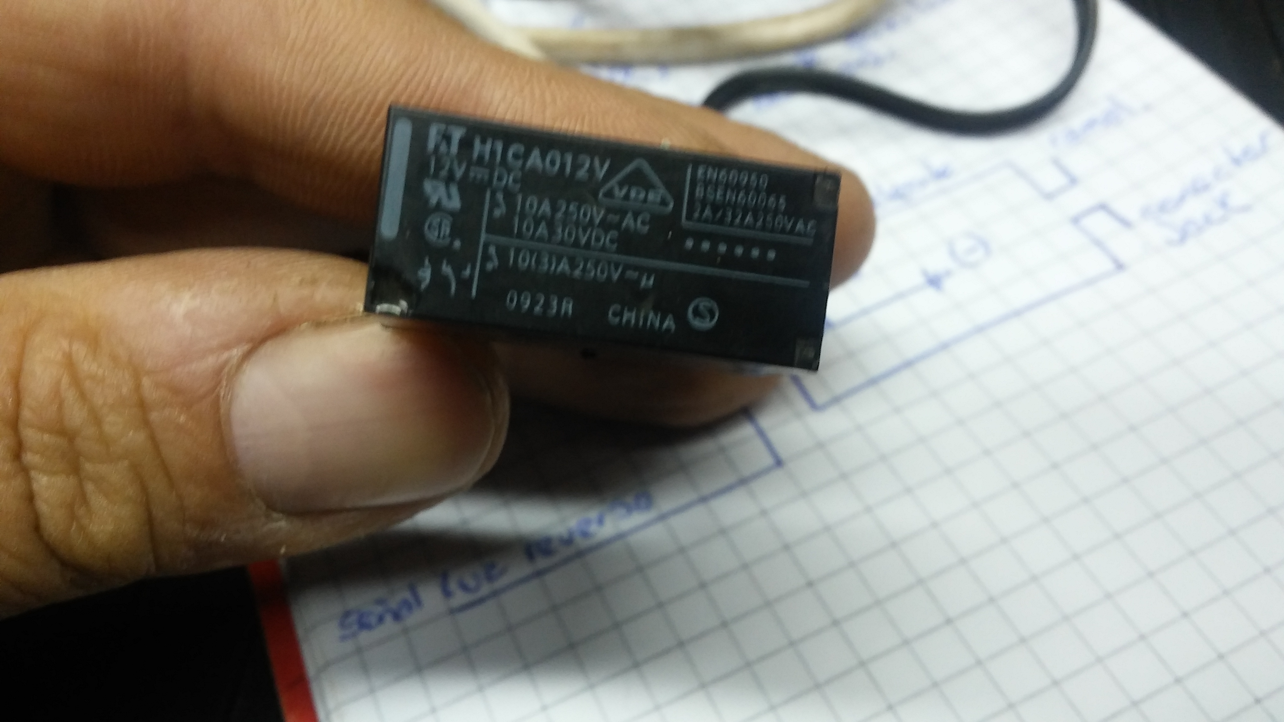 Ahora lo que tenemos que hacer es hacer funcionar el auxiliar cada vez que ponemos la marcha atrás. Ya sabemos que el auxiliar se enciende desligando los cables blanco y celeste, para esto tenemos que instalar un mini relay de 12V, existen varios modelos pero el que necesitamos es uno con contactos normal cerrado (NC)