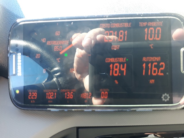En primer lugar nos da el tan preciado indicador de temperatura del refrigerante, según la aplicación el auto llega a la temperatura de funcionamiento a unos 90º donde se enciende el electro e inmediatamente la temperatura cae a cerca de 70 º. En ruta unos 140 km/h mas o menos funciona a unos 84º clavados prácticamente.