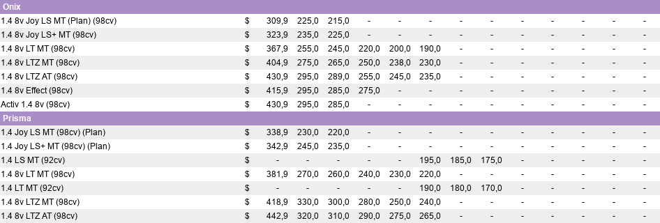 Por ejemplo para un Prisma LTZ Manual 0Km