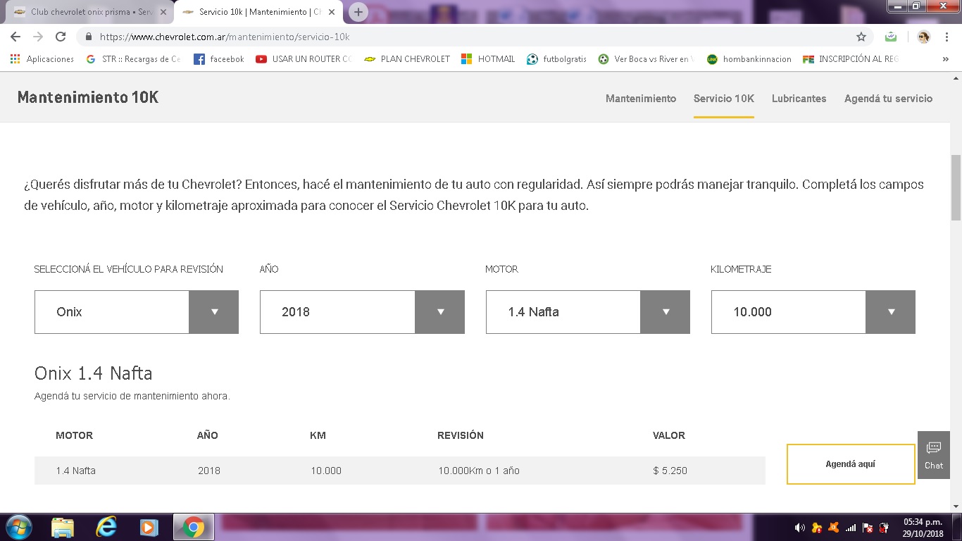 hola mi onix joy tiene 9200 llame para averiguar soy d santa fe me sale 5.250 el servi 10k y me dijeron que es obligatorio por la garantia. yo pense que por ser el primer servi era sin costo pero no!!!lo que no se que voy a averiguar hasta cuando tiene garantia yo lo estoy pagando por un plan