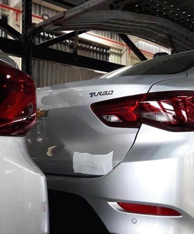 La primera imagen oficial muestra el emblema sobre tapa del baúl del sedán Onix Plus. La foto original (arriba) está un poco oscura, pero con un leve clareado a base de Photoshop fue posible revelar lo que dice: “Turbo”.