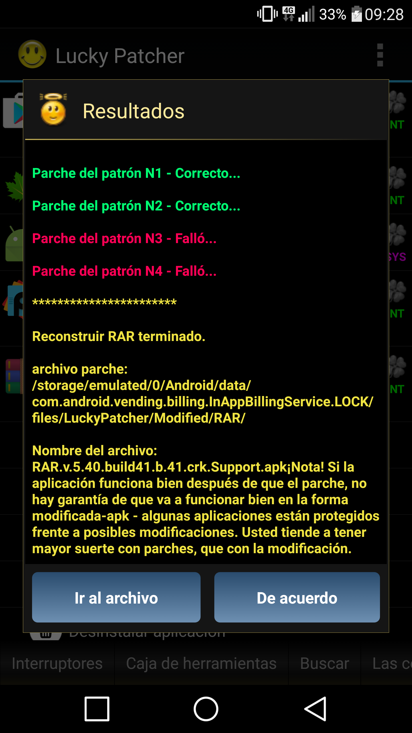 No desinstalar Lucky Patcher!!...se detiene BringGo..