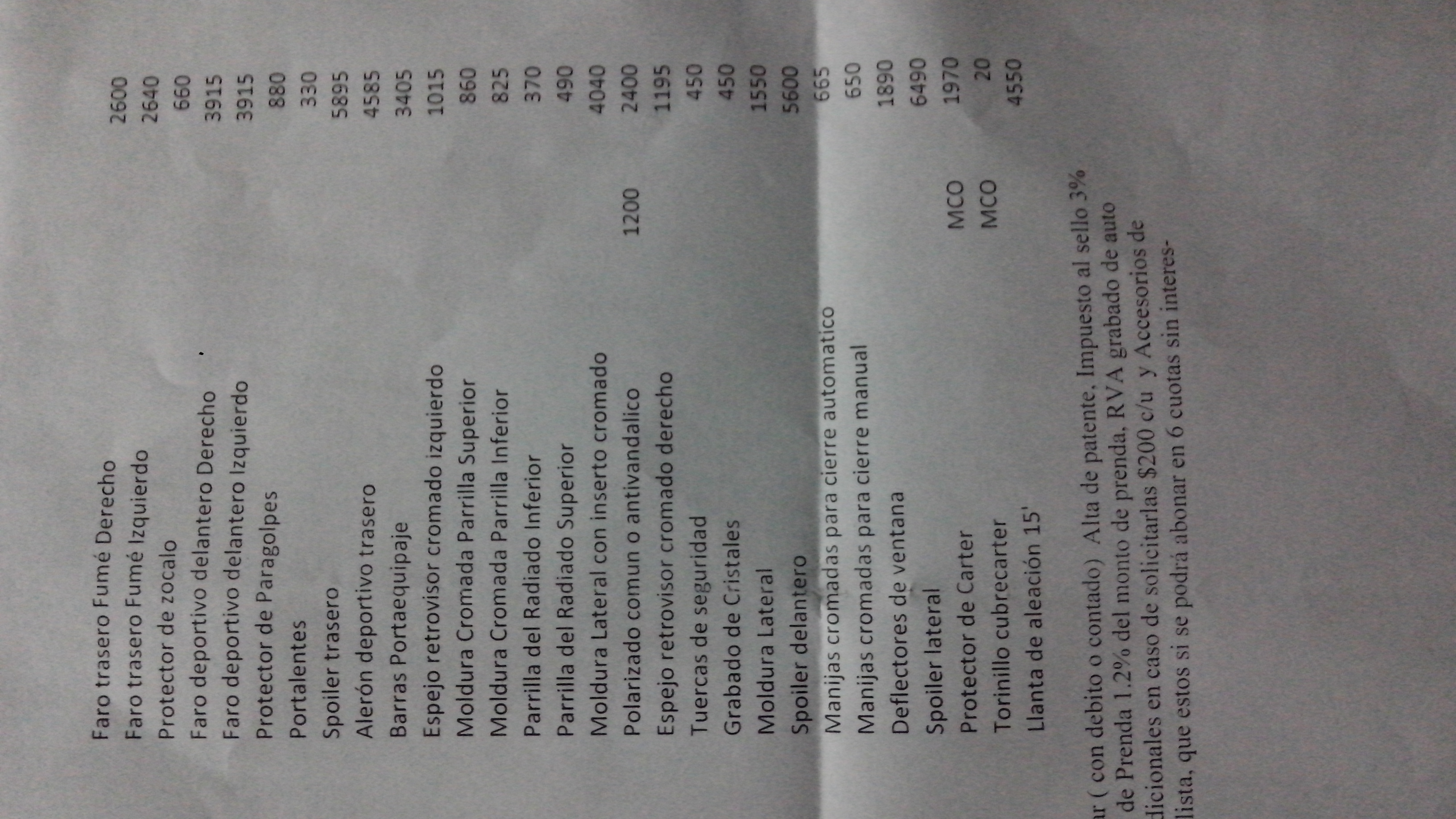 En la concesionaria me dieron un listado completo con accesorios por si quiero solicitar alguno.
