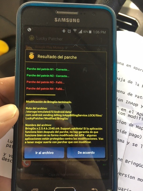 No desinstalar Lucky Patcher!!...se detiene BringGo..
