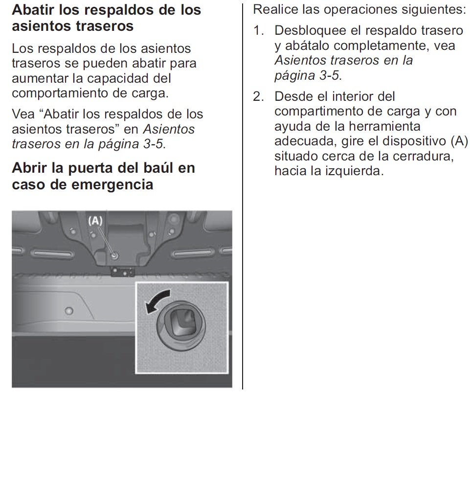 Hola. El manual te dice cómo hacer para destrabar el baúl desde el interior en la sección 4-4. Ahí va la imagen.