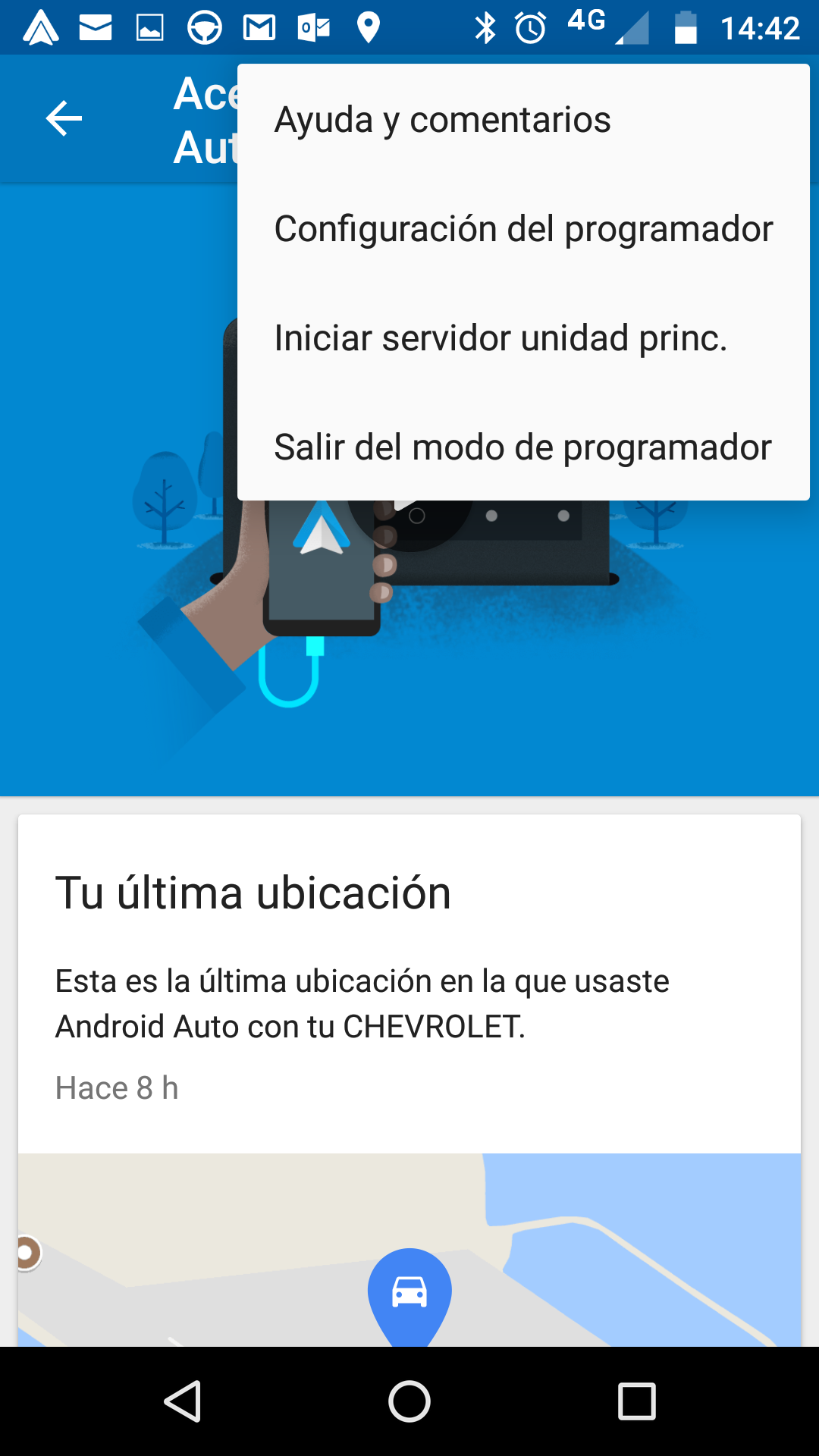 4.- presionar repetidas veces sobre el texto "acerca de android auto" para poder entrar en modo programador.