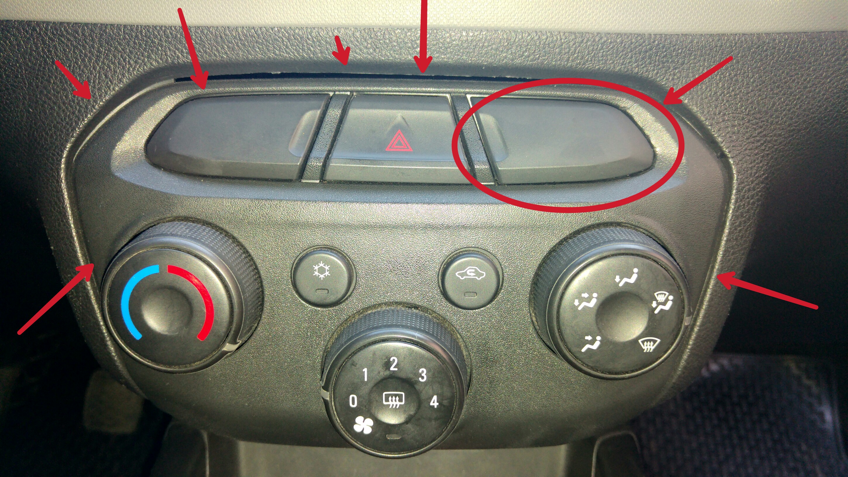 Mi idea es retirarla para poner la apertura interna del baul y poner el pulsador debajo de la tecla ciega marcada en la foto