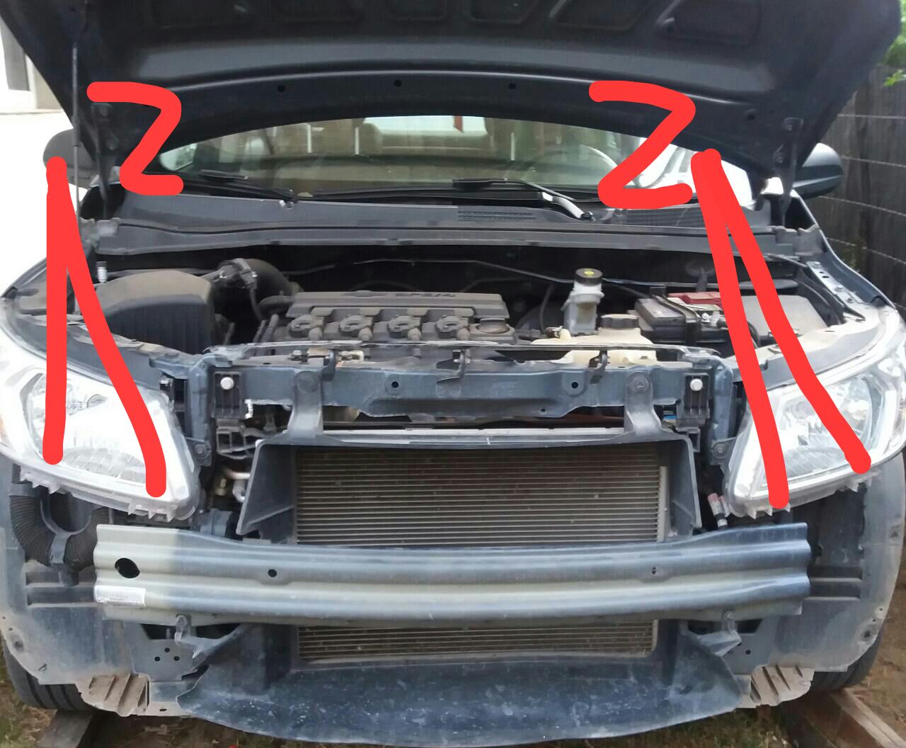 2.-levantar capot y quitar 6 tornillos torx de la parte superior de la parrilla