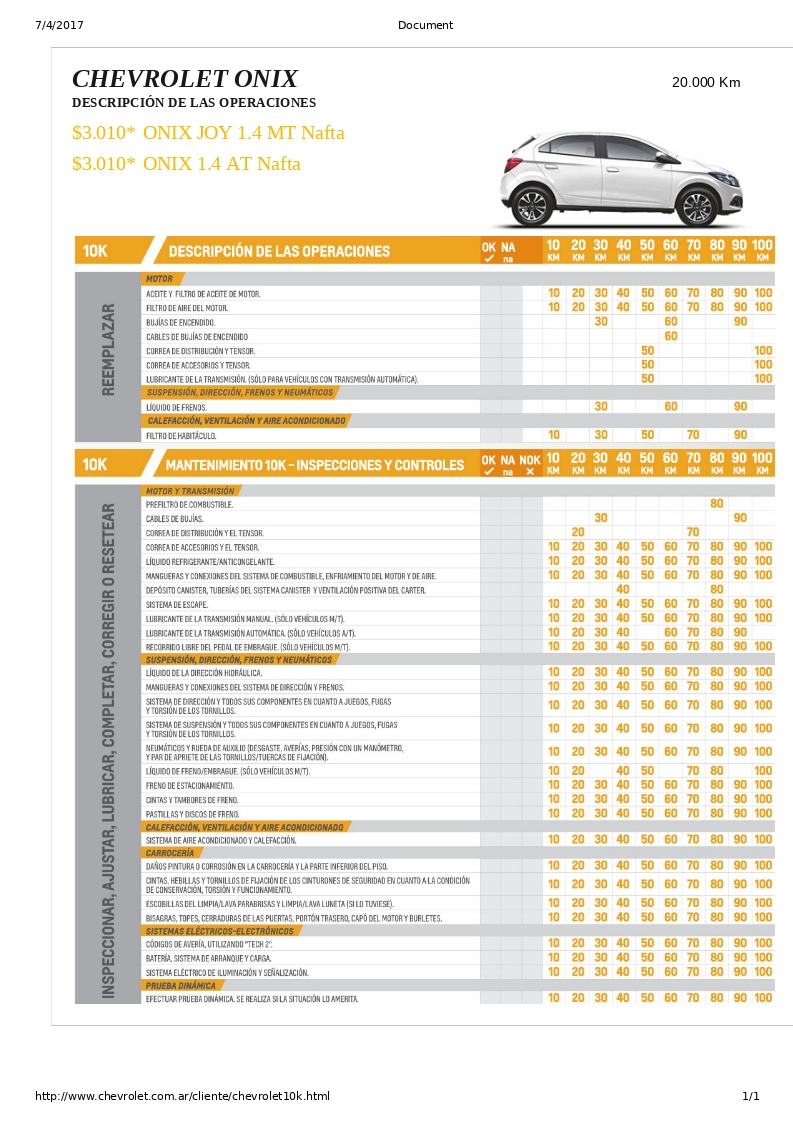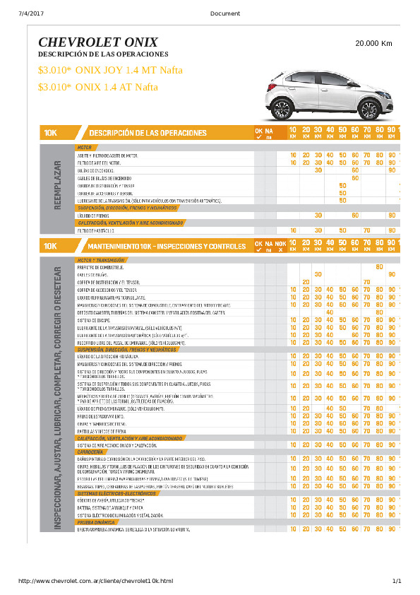 Buenas, aqui adjunto descripcion de lo que le hacen en los diferentes service a los onix / prisma